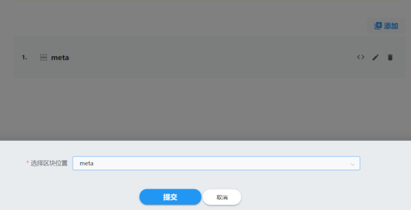 步骤 #02 点击右侧的添加按钮弹出添加面板,在区块位置里选择meta后提交